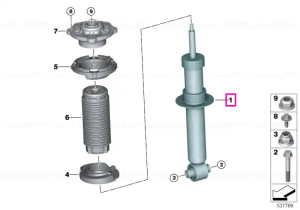 Notă: Reperul este compatibil cu autoturisme echipate cu 0704 (M Sports suspension), dar nu este potrivit pentru cele dotate cu 02VV (Adaptive suspension Professional).